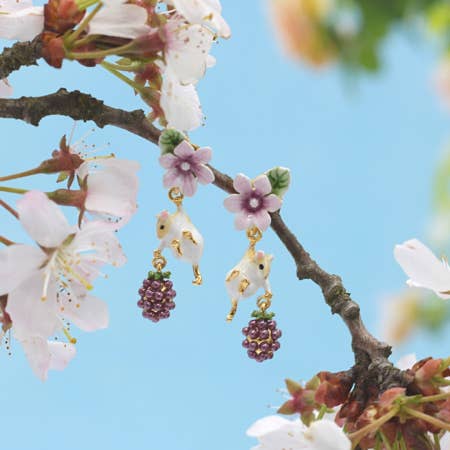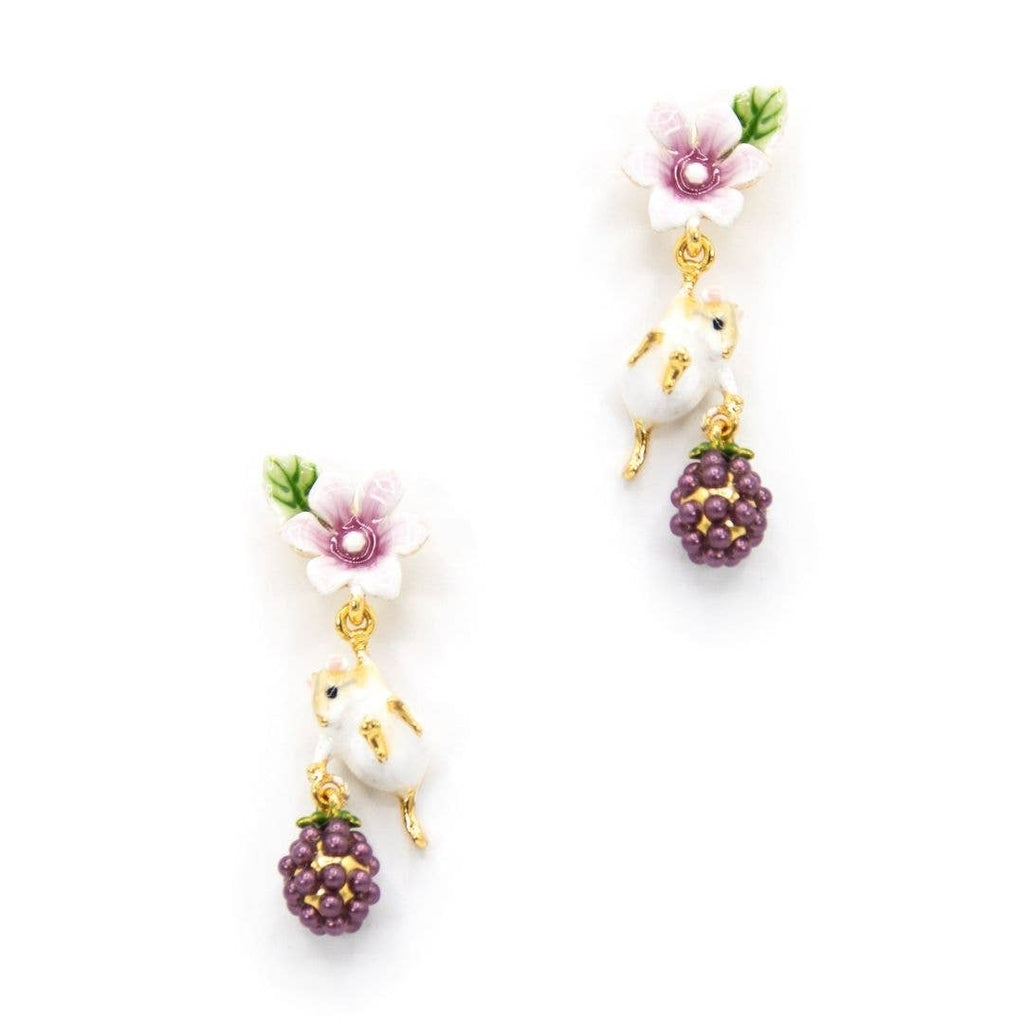 Blackberry Mouse Drop Earrings – Whimsical Charm by Bill Skinner
