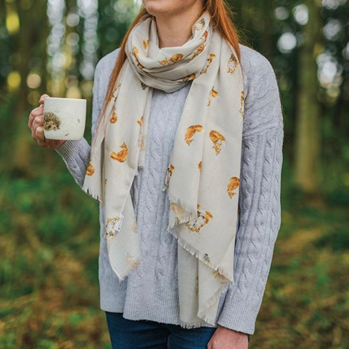 This gorgeous lightweight scarf will add a touch of colour to any outfit. This design features lovely fox illustrations. The scarves each measure 70cm x 190cm and are supplied with their own gift bag. Hand wash only. Made from 100% polyester.