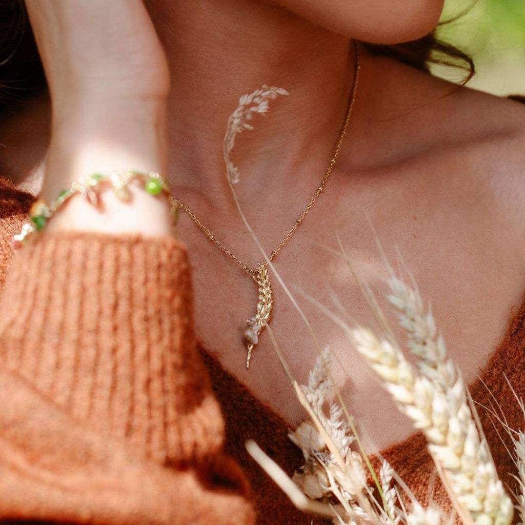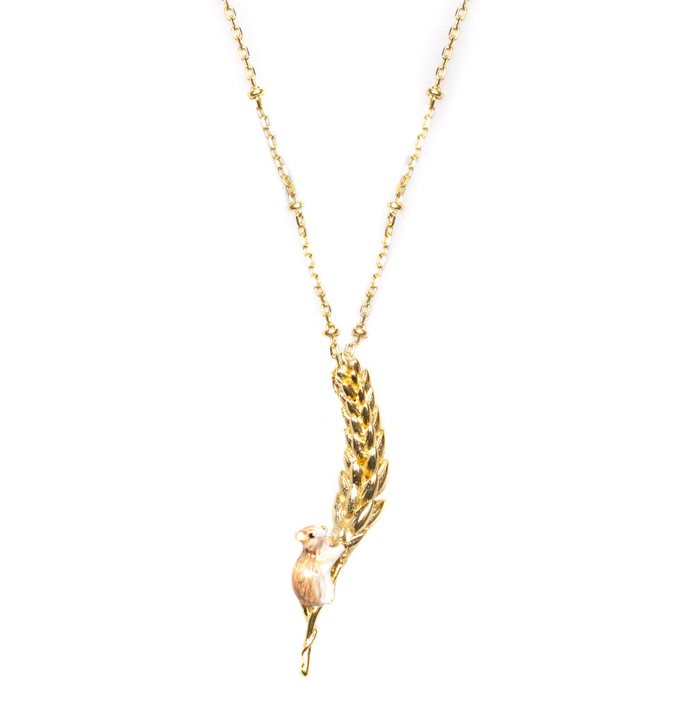 These adorable drop earrings feature a hand painted field mouse playfully climbing up an expertly crafted 18ct gold plated ear of corn. Presented on a 40cm plus 5cm extender 18ct gold plated chain.