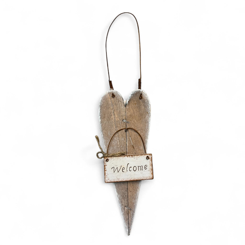 Add a warm, rustic greeting to any space with this heart-shaped wooden sign. Finished in a weathered, shabby chic style, it’s perfect for entryways, shelves, or as a friendly seasonal backdrop.