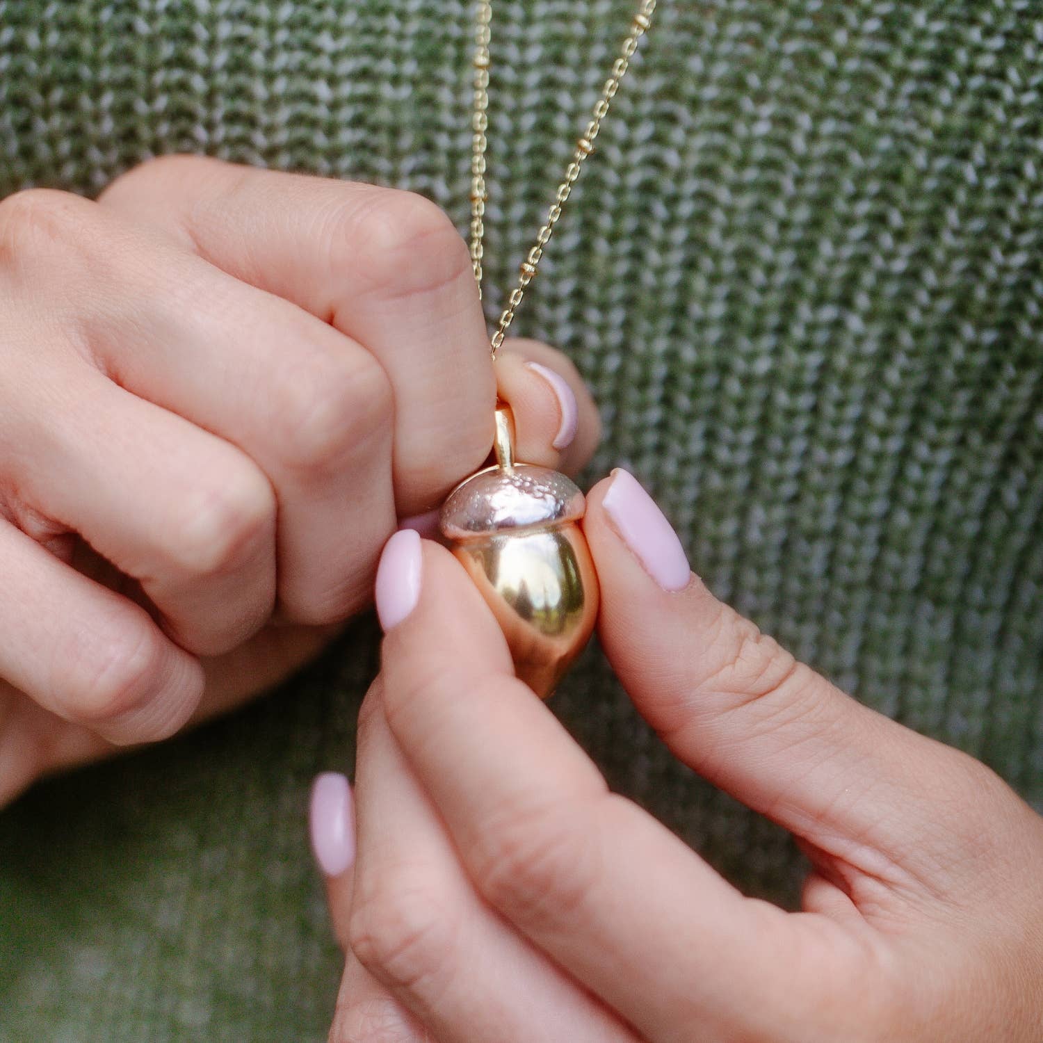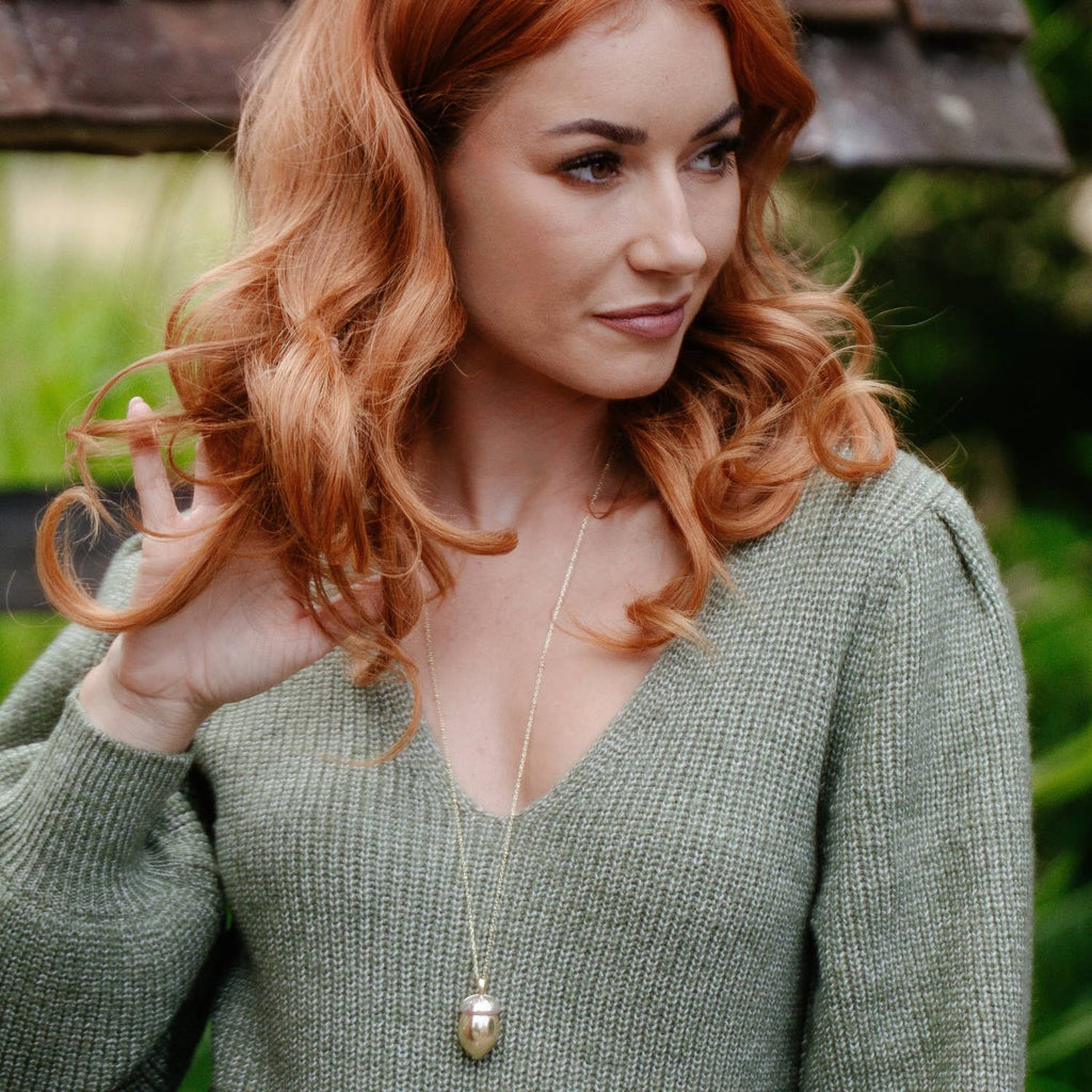 This acon locket is full of charm and character, a hand painted red squirrel eating a pearlised acon nut sits inside this delightful locket. Presented on an elegant 18ct 70cm gold plated chain.