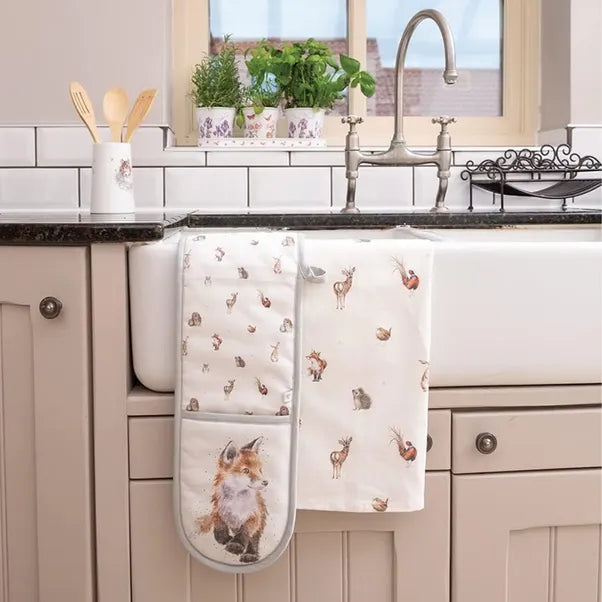 A wonderful addition to any kitchen, these fabulous oven gloves feature a 'Woodlanders' design in a repeat pattern and a large fox design on the mitts.